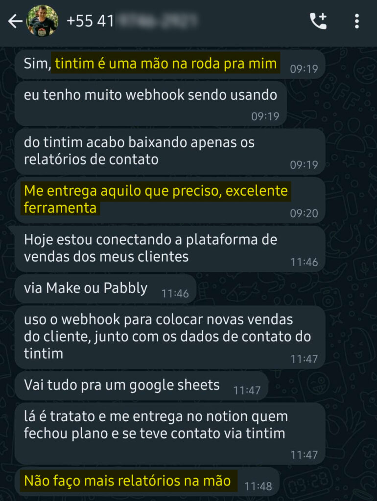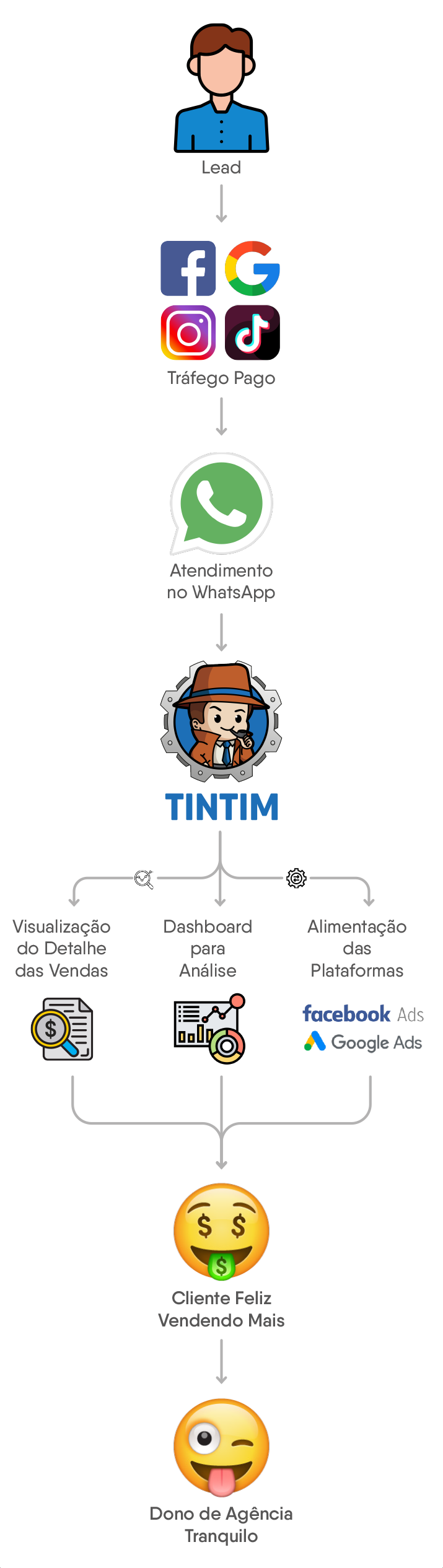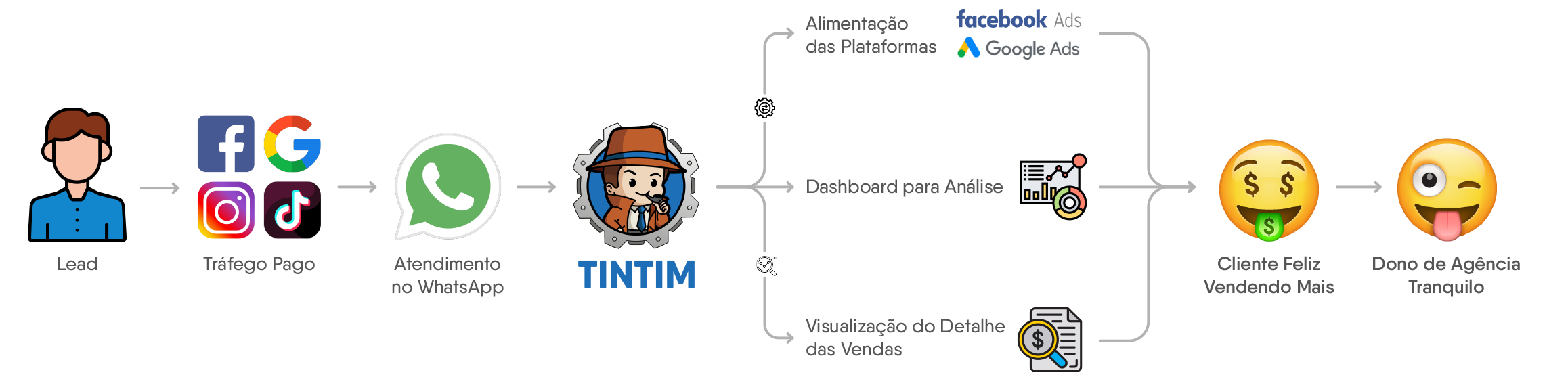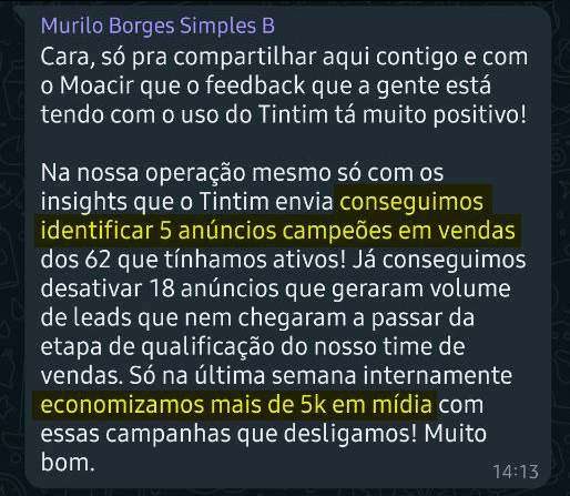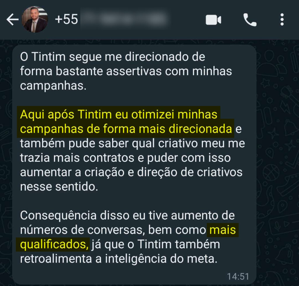 Tintim é a única ferramenta que permite rastrear as vendas das suas campanhas de WhatsApp de forma simples e automatizada, fornecendo dados mais completos e assertivos para otimizar suas campanhas e aumentar sua lucratividade.